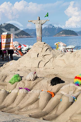 Assunto: Escultura em areia de mulheres de biquíni e Cristo Redentor com a bandeira do Brasil na Praia de Copacabana / Local: Copacabana - Rio de Janeiro (RJ) - Brasil / Data: 03/2014