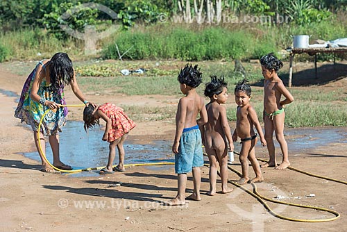 •  Antropóloga lavando os cabelos de crianças com shampoo anti piolho na aldeia Aiha da tribo Kalapalo - ACRÉSCIMO DE 100% SOBRE O VALOR DE TABELA  - Querência - Mato Grosso (MT) - Brasil