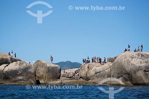Assunto: Pessoas pulando no mar das pedras próximo à Praia de Piratininga / Local: Piratininga - Niterói - Rio de Janeiro (RJ) - Brasil / Data: 03/2014