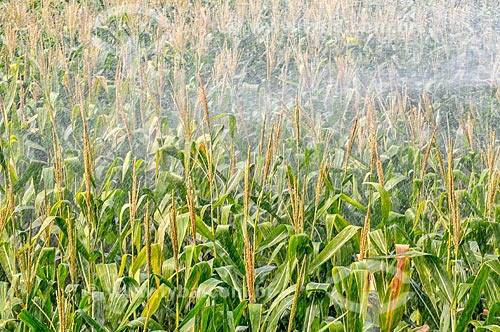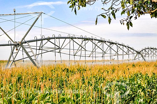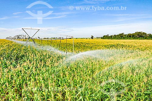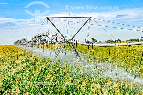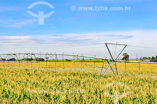Irrigação de plantação de milho com pivô central - Buritama - São Paulo (SP) - Brasil