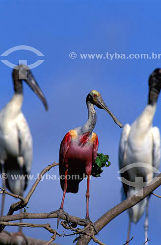 •  (Platalea ajaja e Mycteria americana) Colhereiro e Cabeça-Seca, Jabiru ou Passarão - Ilha do Marajó - PA - Brasil  - Pará - Brasil