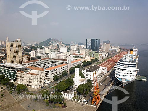 •  Foto feita com drone da Praça Mauá com navio de cruzeiro sendo abastecido no Píer Mauá  - Rio de Janeiro - Rio de Janeiro (RJ) - Brasil