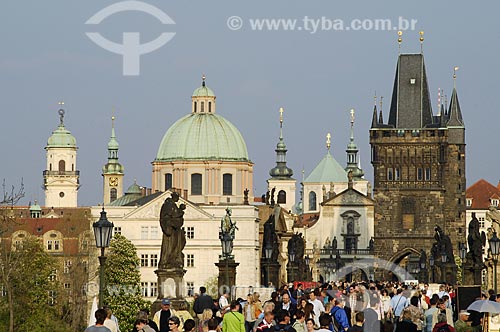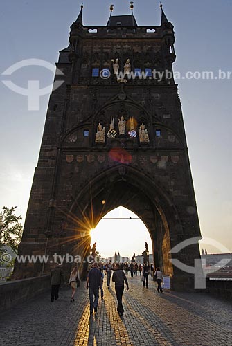 Torre da cidade velha na Karluv most (Ponte Carlos) - mais antiga ponte de Praga sobre o Rio Moldava - Praga - Região da Boêmia Central - República Tcheca
