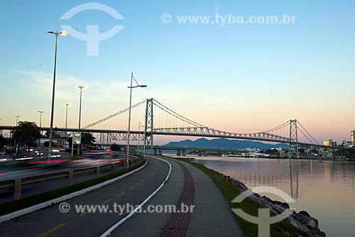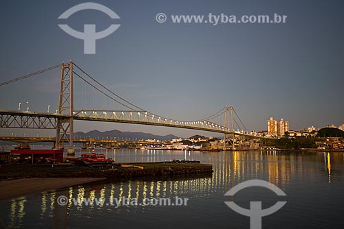 Vista da Ponte Hercílio Luz (1926) durante o pôr do sol - Florianópolis - Santa Catarina (SC) - Brasil