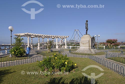 •  Monumento em homenagem ao governador Hercílio Luz com a Ponte Hercílio Luz (1926) ao fundo  - Florianópolis - Santa Catarina (SC) - Brasil
