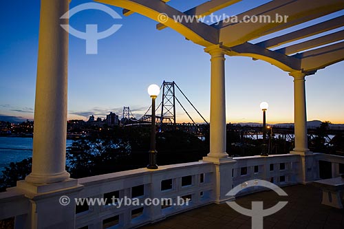 •  Vista do pôr do sol no mirante da Praça Hercílio Luz com a Ponte Hercílio Luz (1926) ao fundo  - Florianópolis - Santa Catarina (SC) - Brasil