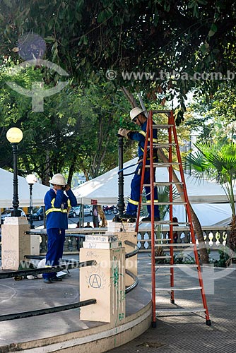 Funcionários da Prefeitura trocando lâmpada da Praça Dom Pedro II - Teresina - Piauí (PI) - Brasil