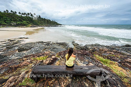 •  Mulher observando a vista da orla da Praia da Tiririca  - Itacaré - Bahia (BA) - Brasil
