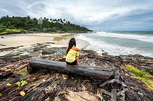 Mulher observando a vista da orla da Praia da Tiririca - Itacaré - Bahia (BA) - Brasil