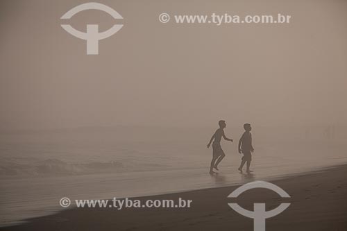 •  Assunto: Jovens na Praia da Barra da Tijuca durante maresia no inverno / Local: Barra da Tijuca - Rio de Janeiro (RJ) - Brasil / Data: 07/2013