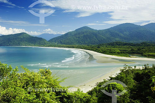 Paisagem mostrando praia, manguezal e restinga - foz de rio e floresta de encosta no Parque Estadual da Serra do Mar - vila de Picinguaba em Ubatuba - SP - Brasil - April 2007 - Ubatuba - São Paulo - Brasil