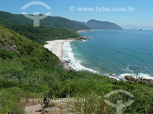 •  Assunto: Praia do Meio deserta com a Pedra da Tartaruga ao fundo / Local: Grumari - Rio de Janeiro (RJ) - Brasil / Data: 01/2011