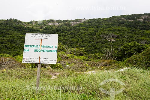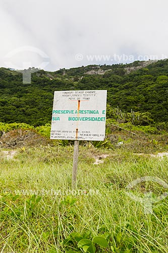 Assunto: Placa na trilha de acesso à Praia do Forno / Local: Arraial do Cabo - Rio de Janeiro (RJ) - Brasil / Data: 01/2014