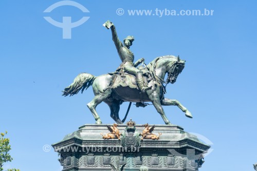 Estátua equestre de Dom Pedro I - Primeira escultura pública do país - Erguida por iniciativa de Pedro II, em homenagem à Proclamação da Independência, foi imaugurada em 30 de março de 1862 - Projeto do artista brasileiro João Maximiano Mafra, sendo as esculturas em bronze executadas e fundidas em Paris por Louis Rochet - Rio de Janeiro - Rio de Janeiro (RJ) - Brasil