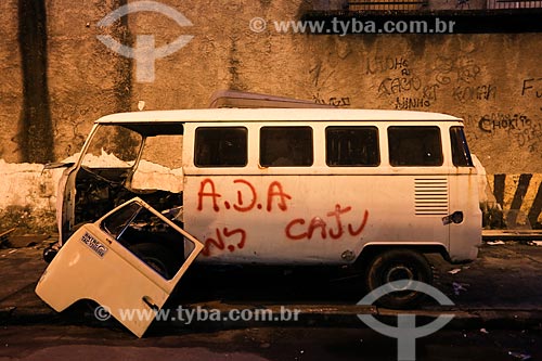 Kombi abandonada em rua durante o início da instalação da Unidade de Polícia Pacificadora (UPP) no conjunto de favelas do Complexo do Caju e Comunidade da Barreira do Vasco na zona norte do Rio de Janeiro - Rio de Janeiro - Rio de Janeiro - Brasil