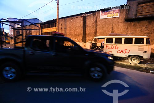 •  Veículo da  Polícia Militar durante o início da instalação da Unidade de Polícia Pacificadora (UPP) no conjunto de favelas do Complexo do Caju e Comunidade da Barreira do Vasco na zona norte do Rio de Janeiro    - Rio de Janeiro - Rio de Janeiro - Brasil