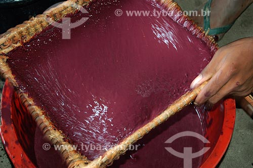 Assunto: Pessoa peneirando poupa de açaí / Local: Pará (PA) - Brasil / Data: 02/2006