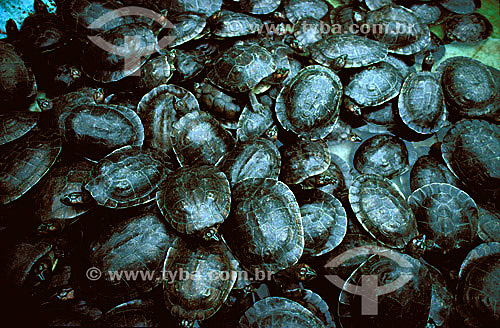 (Podocnemis expansa) Filhotes de Tartaruga-da-Amazônia ou Tartaruga-do-Amazonas - Resgate de animais na inundação da construção da hidroelétrica Balbina - Amazônia - AM - Brasil - Amazonas - Brasil