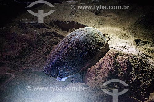 •  Tartaruga marinha colocando ovos sob o acompanhamento de voluntários do Projeto TAMAR  - Linhares - Espírito Santo (ES) - Brasil