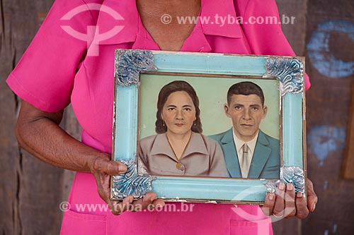 Assunto: Moradora segurando o próprio retrato pintado com seu marido em área de invasão no Morro do Chapéu, comunidade sob estudo da Vale e prefeitura para reassentamento / Local: Parauapebas - Pará - Brasil / Data: 10/2010