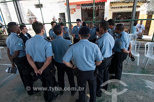 Assunto: Policiais militares em reunião na quadra de esportes no Morro da Providência / Local: Gamboa - Rio de Janeiro (RJ) - Brasil / Data: 06/2011