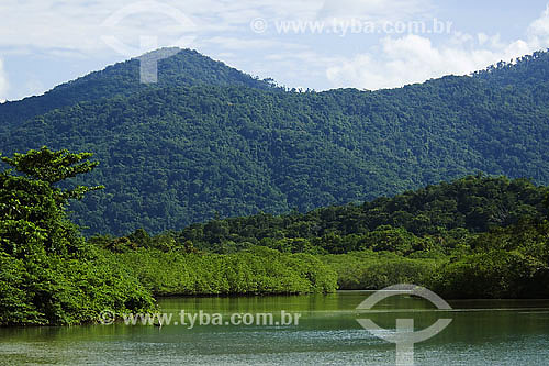 Paisagem mostrando praia, manguezal e restinga - foz de rio e floresta de encosta no Parque Estadual da Serra do Mar - vila de Picinguaba em Ubatuba - SP - Brasil - April 2007 - Ubatuba - São Paulo - Brasil