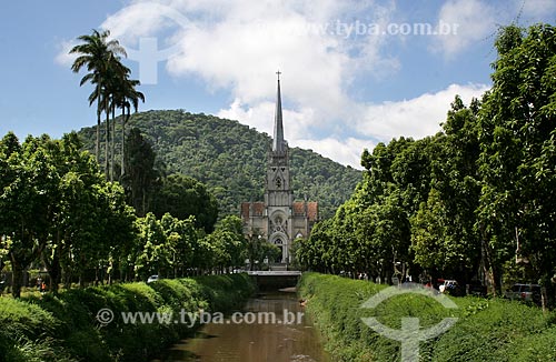 Rio Quitandinha com a Catedral de São Pedro de Alcântara (1846) ao fundo - Petrópolis - Rio de Janeiro (RJ) - Brasil