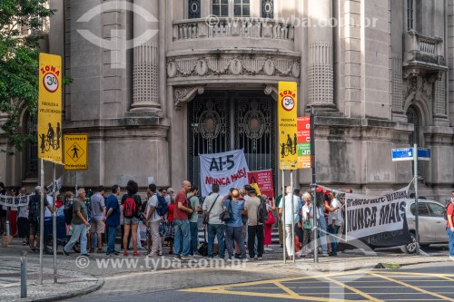 • AI-5 Nunca Mais, manifestação em frente ao prédio do extinto DOPS ? Departamento de Ordem Política e Social, órgão de repressão da ditadura militar,  marcando os 56 anos do Ato Institucional nº 5, organizada pelo Coletivos RJ Memória, Verdade, Justiça e Reparação, com a participação de artistas visuais e teatrais - Rua da Relação 40 - Rio de Janeiro - Rio de Janeiro (RJ) - Brasil