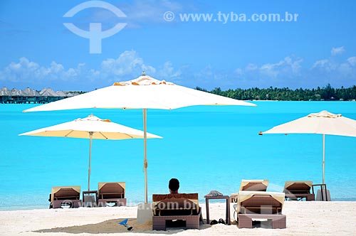 Assunto: Homem sentado em frente à praia / Local: Ilha Bora Bora - Polinésia Francesa - Oceania / Data: 10/2012