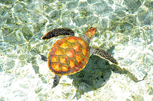 Assunto: Tartaruga marinha em água cristalina / Local: Ilha Bora Bora - Polinésia Francesa - Oceania / Data: 10/2012