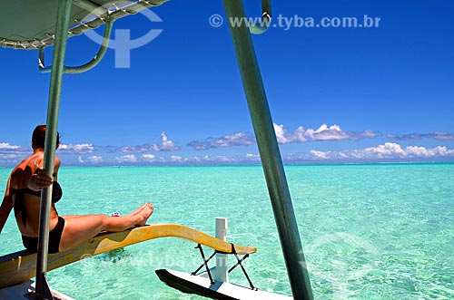Assunto: Mulher tomando sol em um barco / Local: Ilha Bora Bora - Polinésia Francesa - Oceania / Data: 10/2012