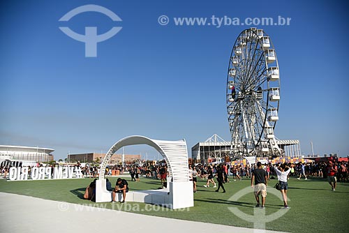 •  Letreiro com os dizeres: Rock In Rio na entrada do Rock in Rio 2017 - Parque Olímpico Rio 2016 - com público chegando  - Rio de Janeiro - Rio de Janeiro (RJ) - Brasil