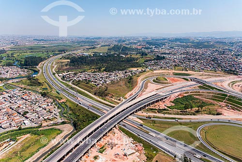 Foto aérea do trevo rodoviário entre o Rodoanel Mário Covas e a Rodovia Ayrton Senna - Itaquaquecetuba - São Paulo (SP) - Brasil