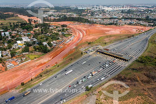 Foto aérea das obras do Rodoanel Mário Covas próximo à Praça de pedágio de Bonsucesso - Guarulhos - São Paulo (SP) - Brasil