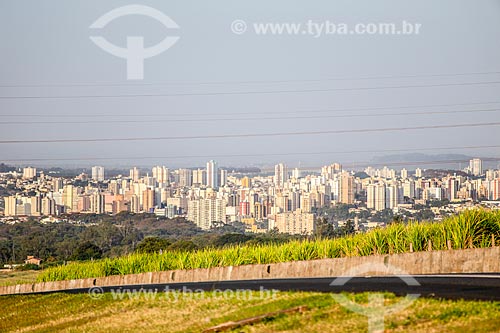 •  Trecho do Anel Viário de Ribeirão Preto com canavial no acostamento e a cidade de Ribeirão Preto ao fundo  - Ribeirão Preto - São Paulo (SP) - Brasil