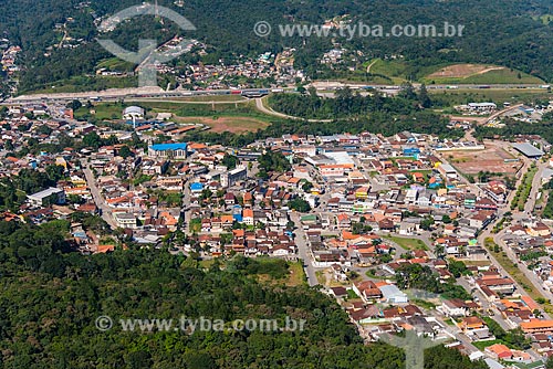 Foto aérea da cidade de Juquitiba com a Rodovia Régis Bittencourt (BR-116) ao fundo - Juquitiba - São Paulo (SP) - Brasil