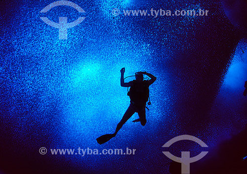 •  Cardúme de sardinhas e mergulhador - Fernando de Noronha - PE - Brasil  - Fernando de Noronha - Pernambuco - Brasil