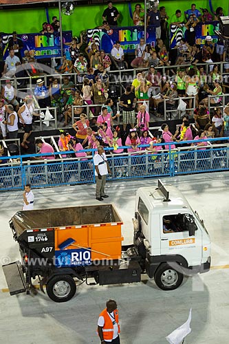 •  Caminhão de lixo da COMLURB - também conhecido como Satélite - fazendo no Sambódromo da Marquês de Sapucaí durante o intervalo entre as escolas de samba  - Rio de Janeiro - Rio de Janeiro (RJ) - Brasil