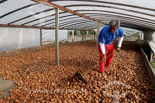 •  Detalhe de grãos de cacau na barcaça - processo de secagem tradicional e natural  - Belmonte - Bahia (BA) - Brasil