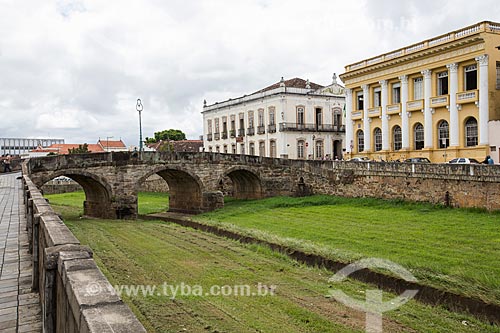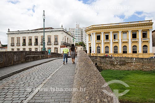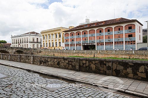 Vista da Ponte da Cadeia (1797) com a Prefeitura de São João del Rei - à esquerda - e o prédio da Secretaria da Fazenda - São João del Rei - Minas Gerais (MG) - Brasil