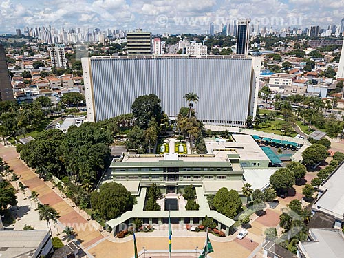 Foto feita com drone do Palácio das Esmeraldas (1933) - sede do Governo do Estado - com o Palácio Pedro Ludovico Teixeira - sede administrativa da Secretaria de Fazenda - ao fundo - Goiânia - Goiás (GO) - Brasil