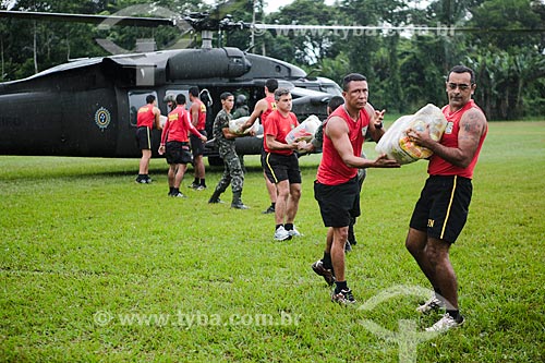•  Helicóptero com cestas básicas para os desabrigados da cheia do Rio Mamoré no Comando de Fronteira Rondônia e 6º Batalhão de Infantaria de Selva  - Guajará-Mirim - Rondônia (RO) - Brasil