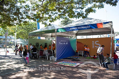 Pessoas na Praça Olímpica Luís de Camões durante a ação social do SESC/SENAC - B.A.S.E. S (Base de Ação Social e Educativa) - Teresópolis - Rio de Janeiro (RJ) - Brasil