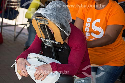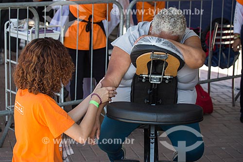 Sessão de massagem durante a ação social do SESC/SENAC - B.A.S.E. S (Base de Ação Social e Educativa) - Praça Olímpica Luís de Camões - Teresópolis - Rio de Janeiro (RJ) - Brasil