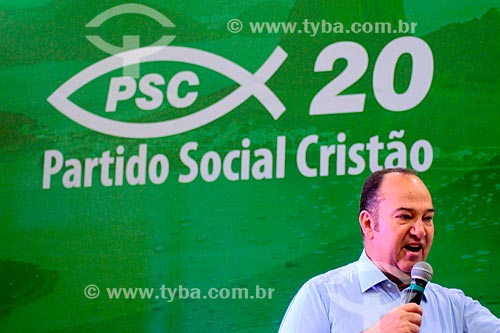 Pastor Everaldo - candidato ao senado pelo Partido Social Cristão (PSC) - durante comício no Clube Monte Sinai - Rio de Janeiro - Rio de Janeiro (RJ) - Brasil