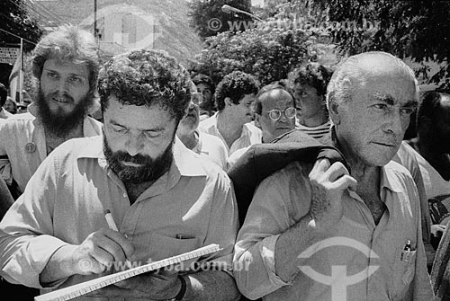 •  Vista de Luiz Inácio Lula da Silva e Leonel Brizola durante o sepultamento de Luís Carlos Prestes  - Rio de Janeiro - Rio de Janeiro (RJ) - Brasil