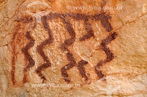 •  Detalhe de pintura rupestre - Sí­tio Arqueológico Templo dos Pilares - Parque Natural Municipal Templo dos Pilares - na Serra do Bom Jardim  - Alcinópolis - Mato Grosso do Sul (MS) - Brasil