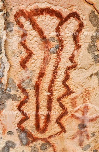 Detalhe de pintura rupestre - Sítio Arqueológico Pata da Onça - na Serra do Bom Jardim - Alcinópolis - Mato Grosso do Sul (MS) - Brasil