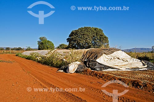 Silagem de milho para servir de alimento ao gado protegidas por lonas na Fazenda Serra Azul - Carmo de Minas - Minas Gerais (MG) - Brasil