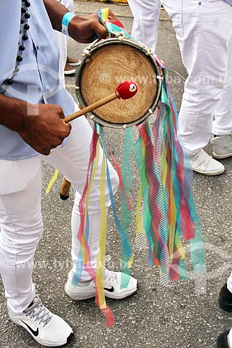 •  Detalhe de membro de congada tocando tambor durante a festa de São Benedito  - Aparecida - São Paulo (SP) - Brasil